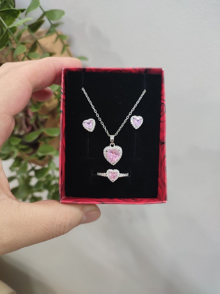 çelik set Pembe Kalp Taşlı Kadın Takı Seti