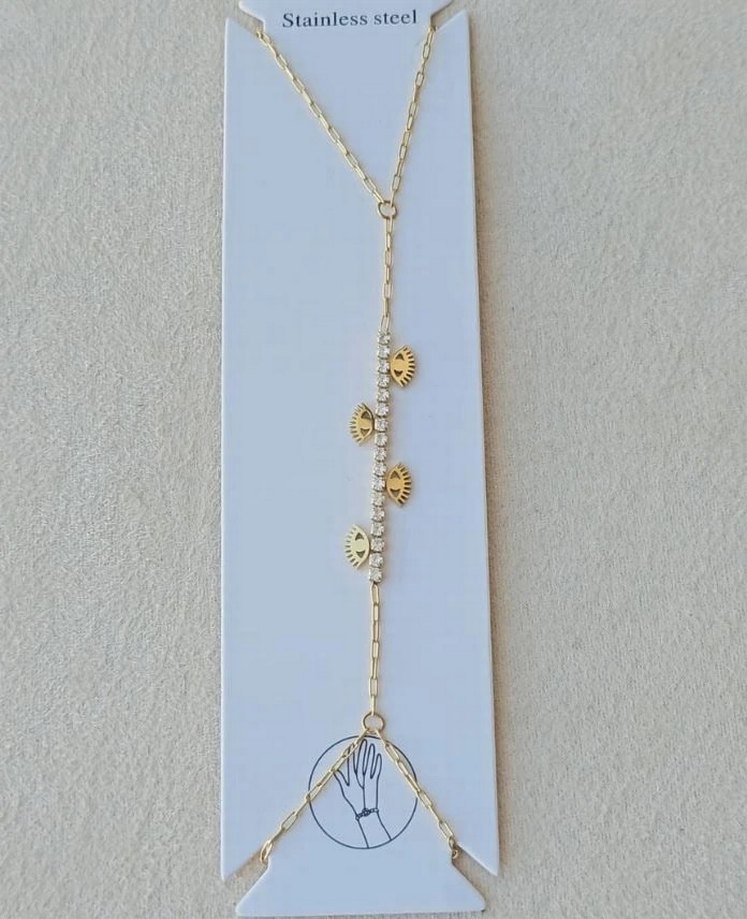 Altın rengi, zincir detaylı ve yılan desenli kadın el zinciri. Paslanmaz çelikten üretilmiş, bohem tarzda aksesuar. Günlük kullanıma uygun. ✨