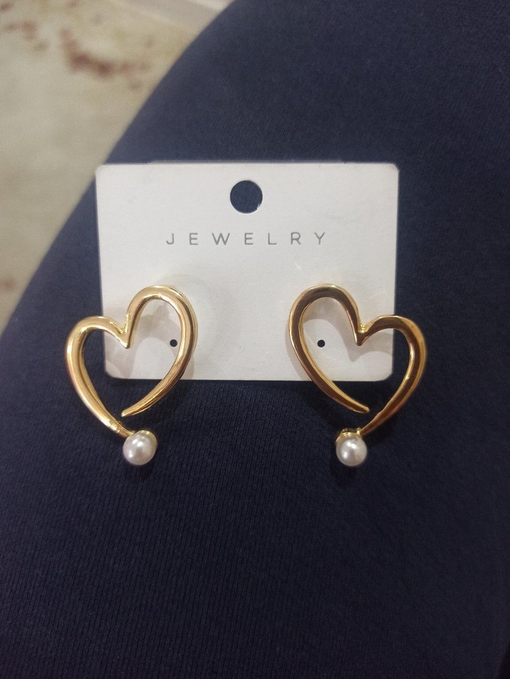Açık altın renkli, küçük boncuk detaylı mini kalp şeklinde küpeler. Romantik akşamlar için çağdaş ve cesur tasarım.