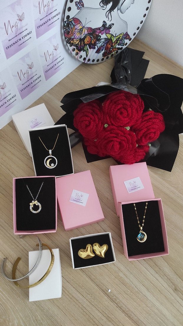 çelik takı ,örgü gül buketi