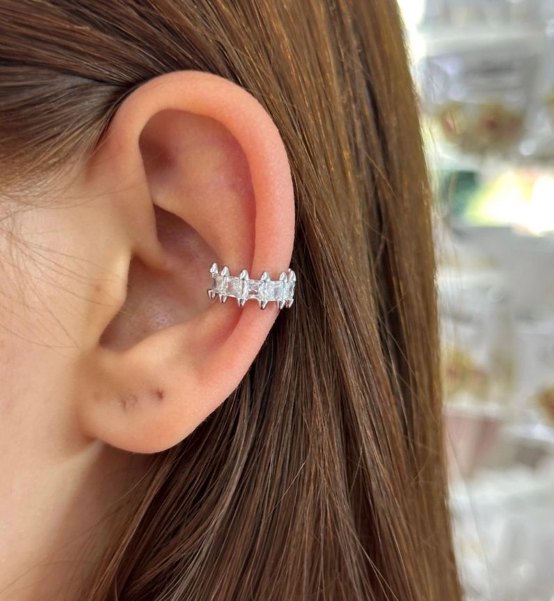 Çelik Taşlı Ear Cuff Kıkırdak Küpe