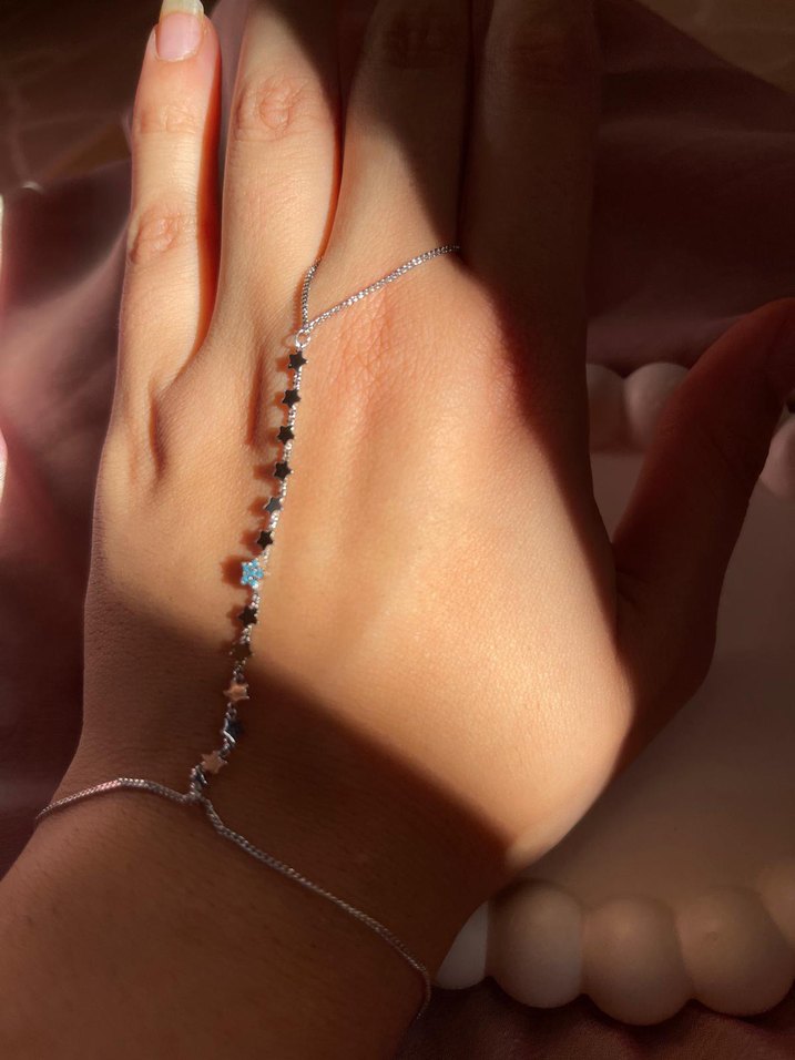 Çelik Turkuaz Boncuklu Minimalist Kadın El Zinciri