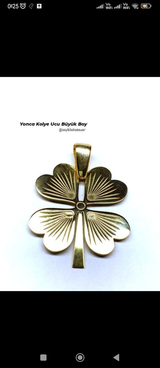 316L ÇELİK GOLD YONCA KOLYE UCUDUR.. BÜYÜK BOYDUR.. ARKASI DESENSİZDİR KUYUMCULARDA İSİM YAZDIRILABİLİR.. Kararmaz ✅ renk atmaz ✅ Paslanmaz ✅ alerji yapmaz ✅ Sağlamdır, Esnemez ✅ Ürünlerim garantilidir; günlük kullanıma uygundur. Duşta, denizde, havuzda da rahatlıkla kullanabilirsiniz Birkaç ürün alımında, ürün birleştirme yapıp kargo ücretsiz yapabilirim ❤️ STOKLAR SINIRLIDIR.i. STOK SORUNUZ.. MAKUL TEKLİFLERE AÇIĞIM.. TÜM ÇELİK ÜRÜNLERİMİ GÖRMEK İÇİN LÜTFEN TIKLAYINIZ #saybilçeliksbl