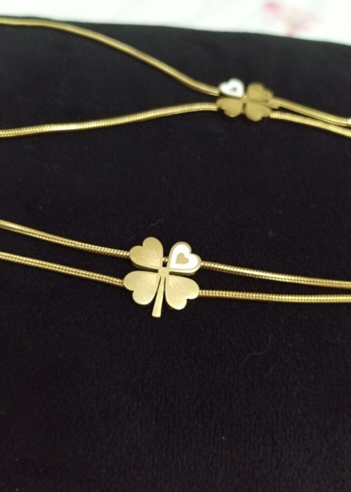 Çelik yonca takı seti, kullanılmadı bır kez, denedim kararma yapmaz celiktir. Kolye ve bileklik set