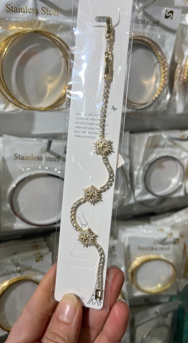 Parlak altın renkli, zincir detaylı ve yıldız figürlü dekoratif bileklik. Paslanmaz çelikten, günlük kullanıma uygun şık bir aksesuar. ✨