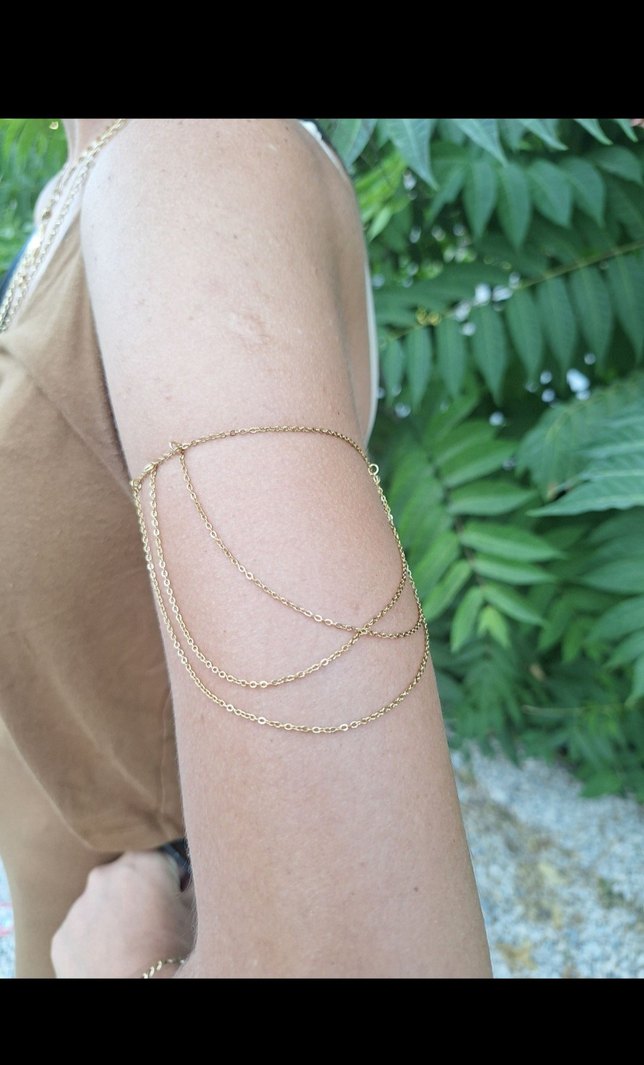 Altın renkli kadın kol zinciri, ince zincir detaylarıyla minimalist bohem tarzını yansıtır, günlük kullanıma uygundur.