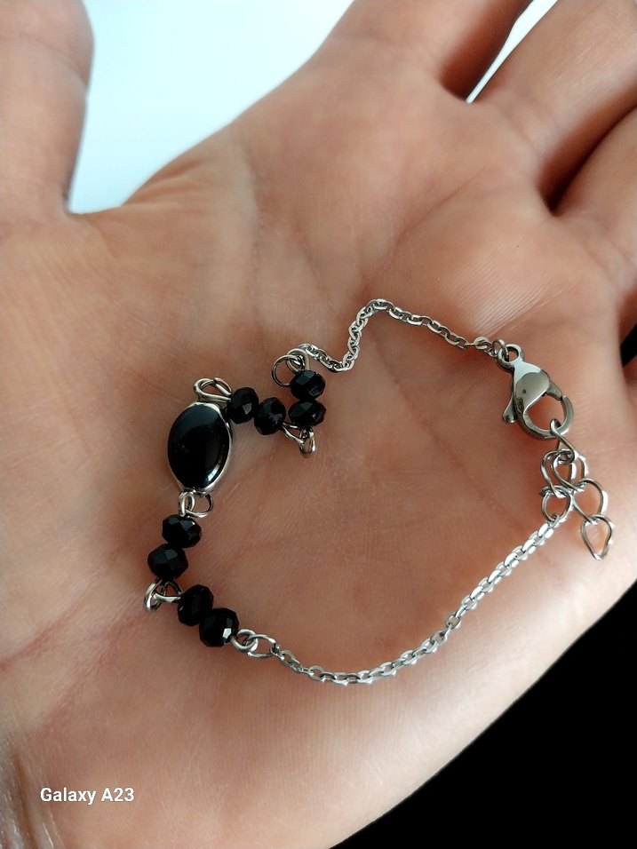 Zincir detaylı ve siyah boncuklu gotik bileklik, bohem ve retro tarzlara uygun, günlük kullanım için ideal.