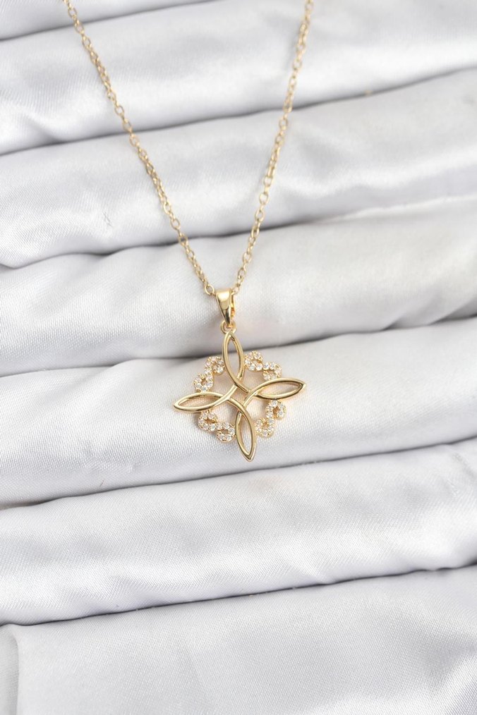 Çelik Zincir Gold Renk Sonsuzluk Model Zirkon Taşlı Kadın Kolye