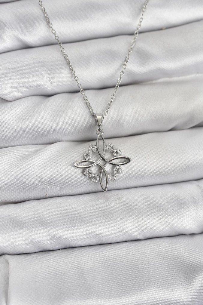 Çelik Zincir Gümüş Renk Sonsuzluk Model Zirkon Taşlı Kadın Kolye