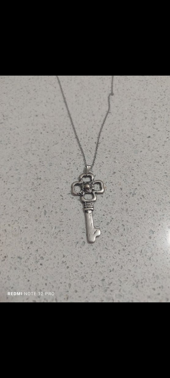 Uzun gri zincirli, gotik tarzda anahtar kolye. Zincir detaylı ve rock punk havası taşıyor. ️