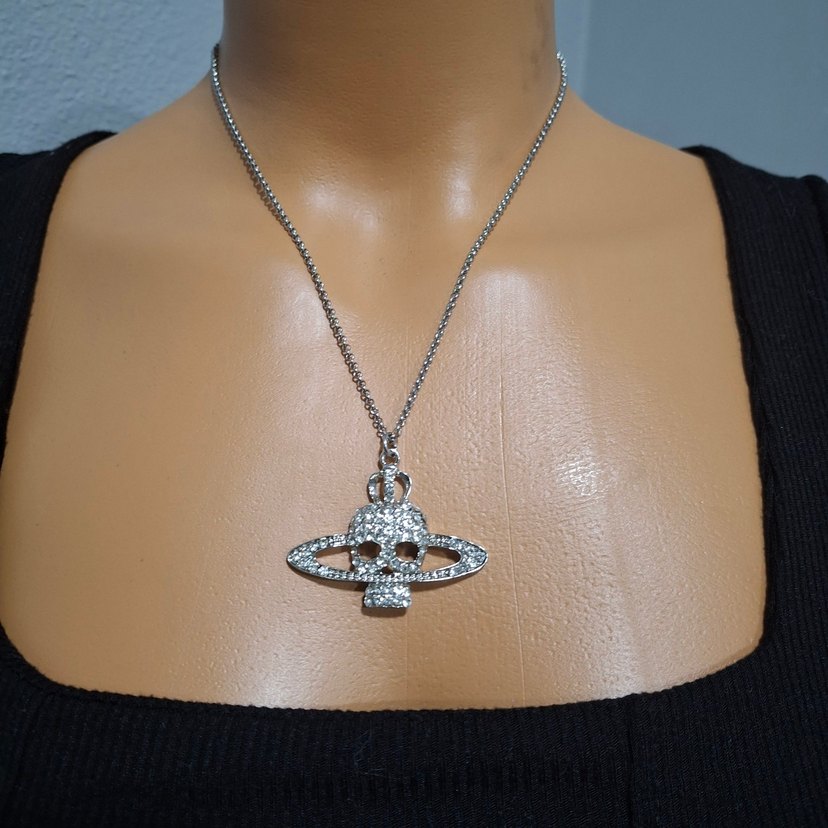 Çelik Zincirli Kurukafa satürn kolye
