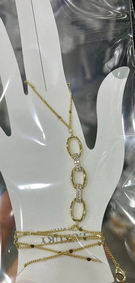 Zincir detaylı, parlak altın renkli kadın el zinciri. Yılan desenli, çağdaş ve gösterişli stil sunar. ✨