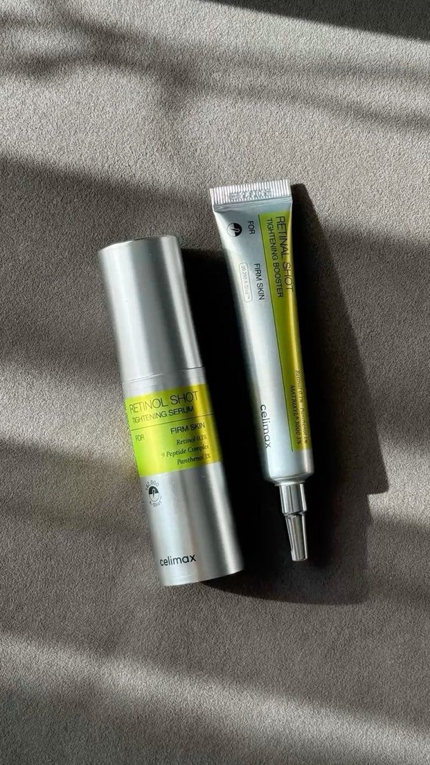 Celimax Retinol Shot, olgun ciltler için peptitler ve panthenol içeren sıkılaştırıcı serumdur.