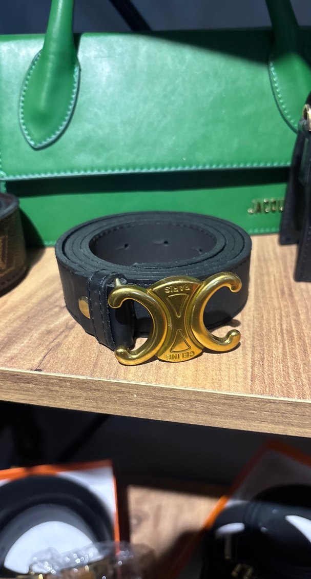 Celine Altın Tokalı Siyah Deri Kadın Kemer