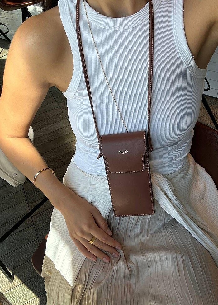 Sıfır üründür. ASKILI DERİ ÇANTASI, TEMİZLEME MENDİLİ, sertifikası ve beyaz renk Celine kutusu dahil full set fiyatıdır ister çantaya telefon koyun ister gözlük koyun