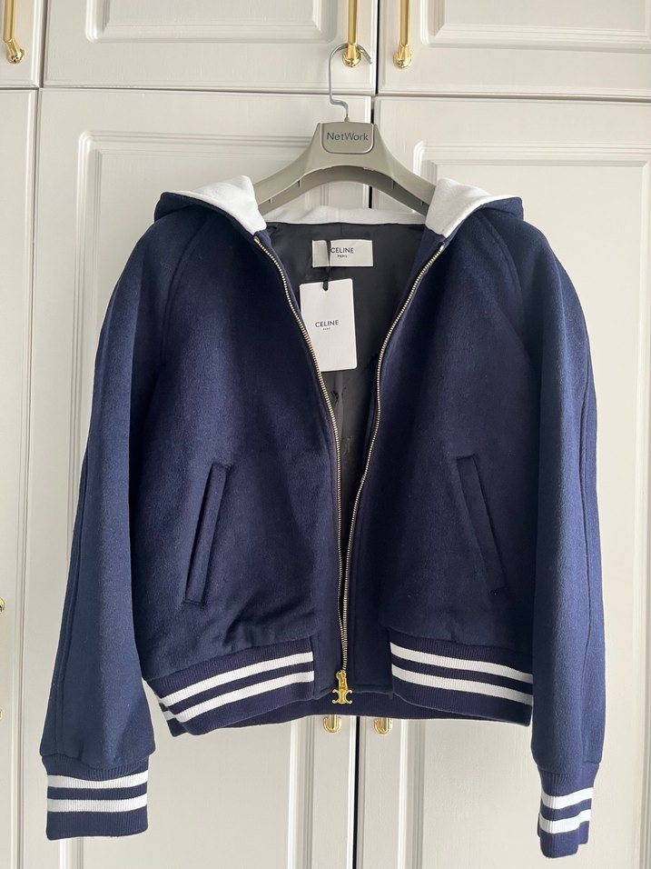CELİNE Orijinal Kaşmir Lacivert Kapüşonlu Fermuarlı Kadın Ceket
