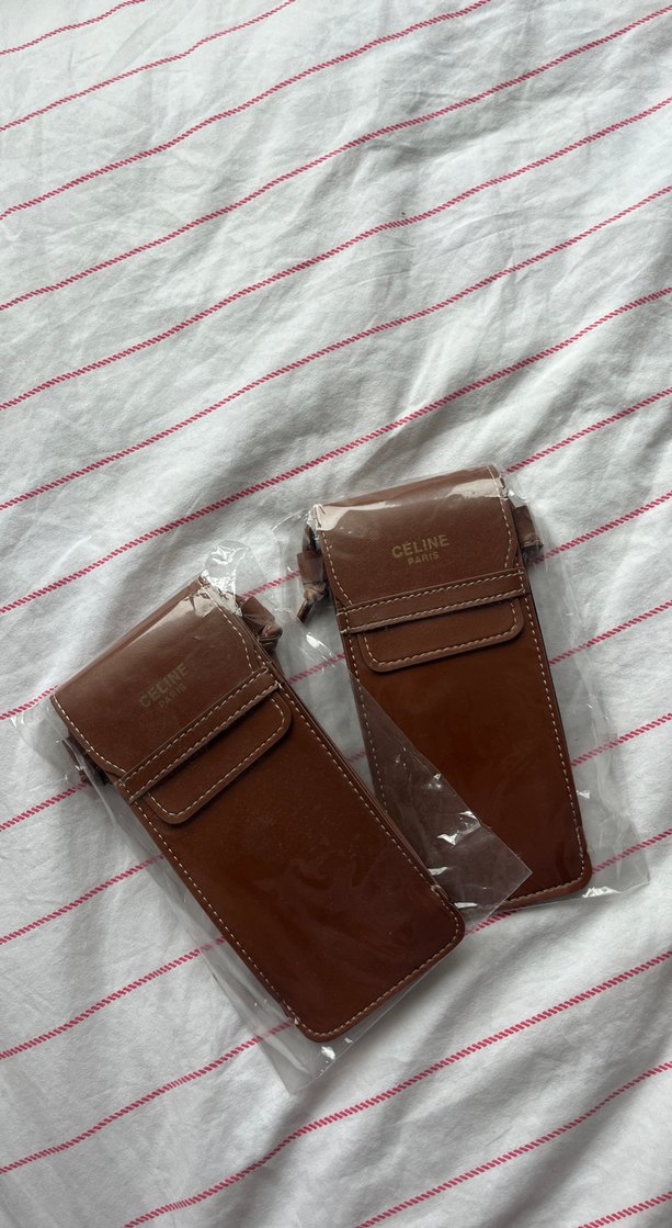 Celine Parlak Kahverengi Fermuarlı Kadın Gözlük telefon çanta