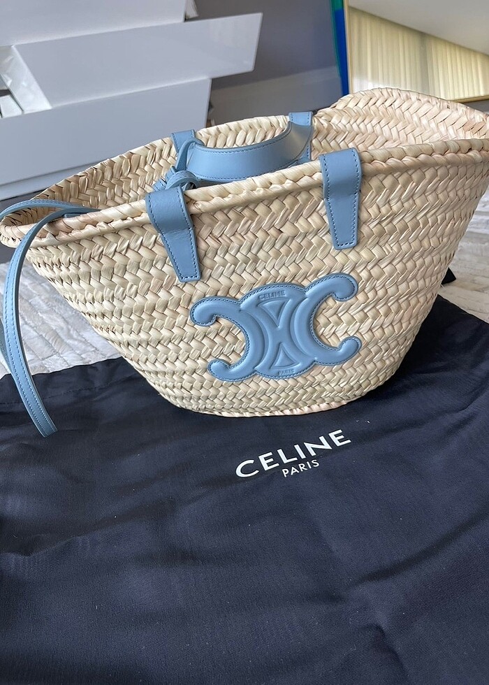 TEEN TRIOMPHE CELINE CLASSIC PANIER IN PALM LEAVES AND CALFSKIN boyutları 23*21*15 İstanbul havalimanı dış hatlar mağazasından daha 2 hafta önce aldım . 1 kez kullandım faturası var.
