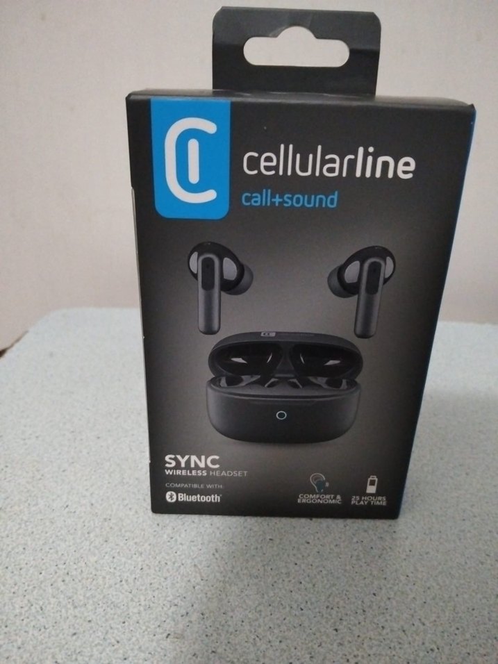 Cellularline SYNC kablosuz kulaklıklar, Bluetooth bağlantı ve rahat ergonomi sunar. Siyah renkte, çağrı ve ses kalitesi iyidir, şarj kutusu ile kullanımı kolaydır. Güzeldir yeni durumda kutulu hiç kullanılmamış sıfır