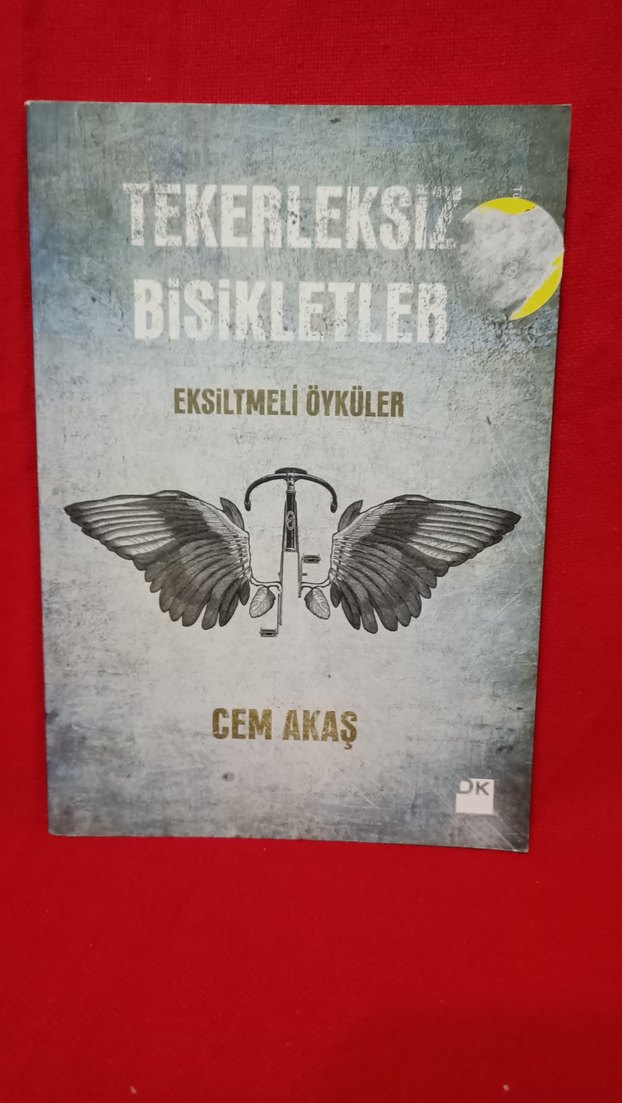 Cem Akas'ın "Tekerleksiz Bisikletler" kitabı, bisiklet görseliyle kapakta yer alır ve eksiltmeli öyküler içerir. Kitap orjinal bandrollü ve sıfır ayarında