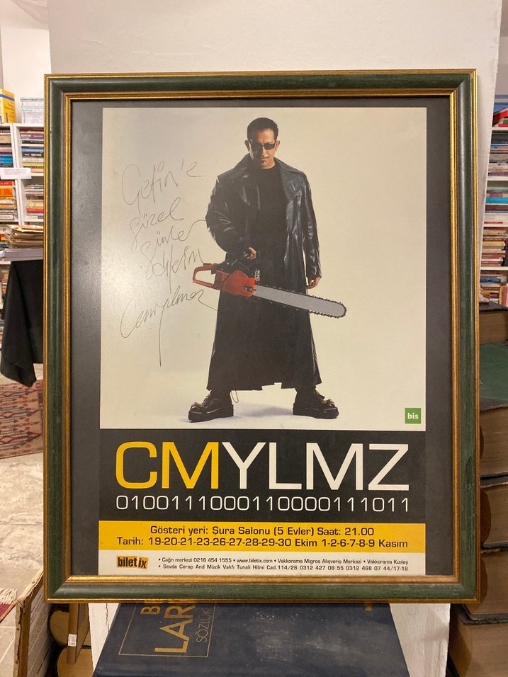 Orjinal 2001 yılından kalma CMYLMZ BİR TAT BİR DOKU MILLENNIUM Gösteri afişi. Orjinal İmzalı. Hiçbir yerde bulunmayan afiş ve Cem Yılmaz imzası. Çok orjinal bir parça göründüğü gibidir hiçbir deformesi yoktur çerçeveli. #filmafişi #tiyatro #komedi #cemyılmaz #vintage #poster #tablo