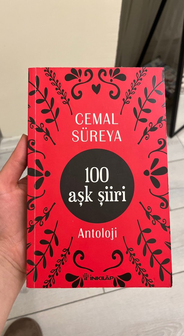 Cemal Süreya'nın 100 aşk şiirinden oluşan antoloji, kırmızı kapak ve çiçek desenleriyle. İnkılap yayınevi tarafından basılmış. ❤️