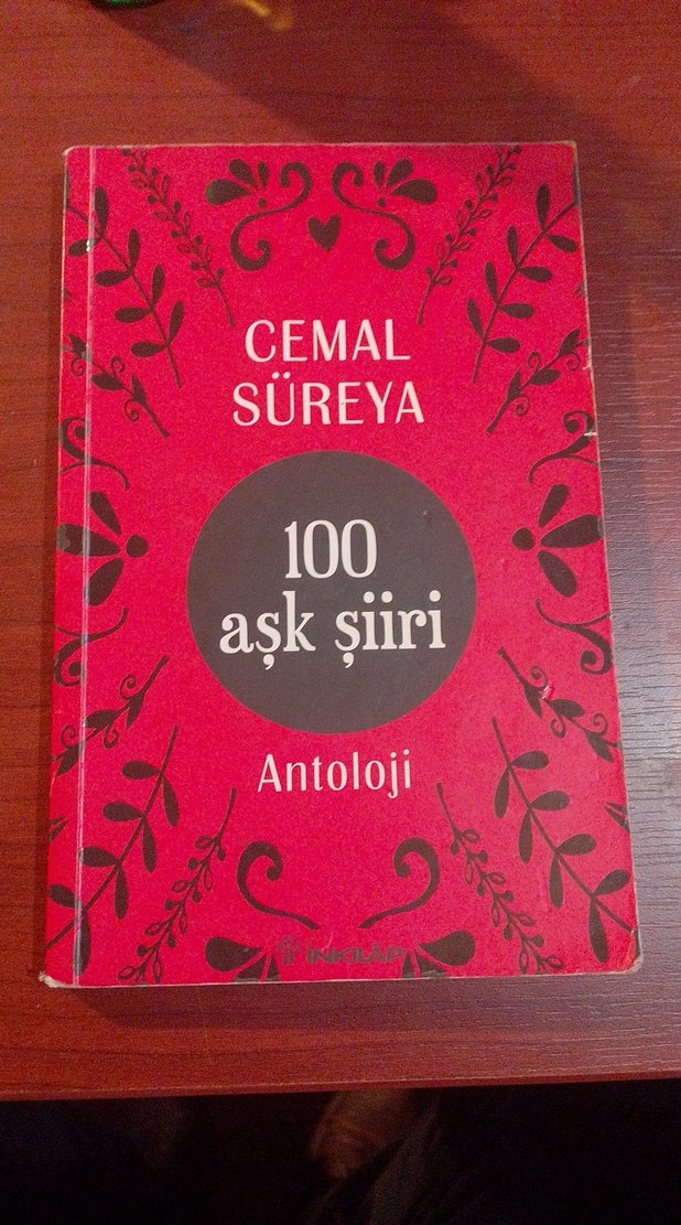 Cemal Süreya'nın 100 aşk şiirinden oluşan antoloji kitabı, kırmızı kapaklı ve çiçek desenli.