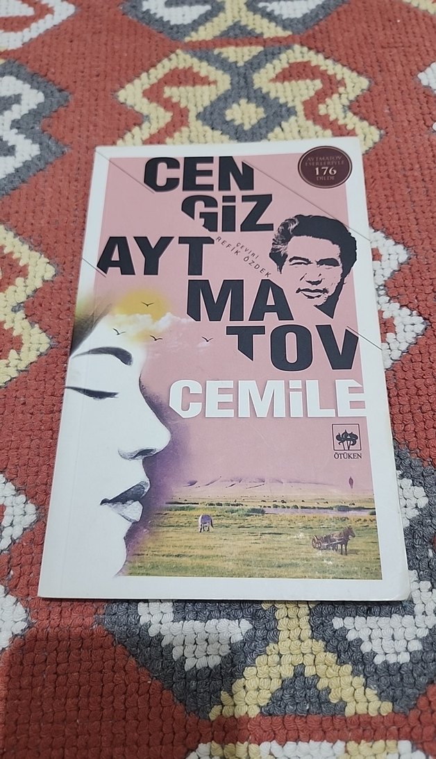 Cengiz Aytmatov'un Cemile adlı romanı, insan duygularını ve kırsal yaşamı derinlemesine işler. kapağın iç kısmında tükenmezle yazılmış yazı var.
