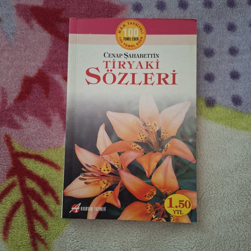 Cenap Şahabettin'in "Tiryaki Sözleri" adlı Osmanlı Türkçesi kitabı, turuncu zambak çiçekleriyle kaplanmış.