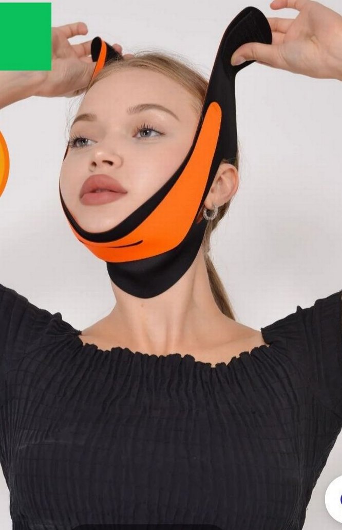 Siyah ve turuncu renkli çene ve yüz şekillendirici bant, çeneyi destekleyip yüzü rahatça şekillendirir. Kullanımı kolaydır. ♀️