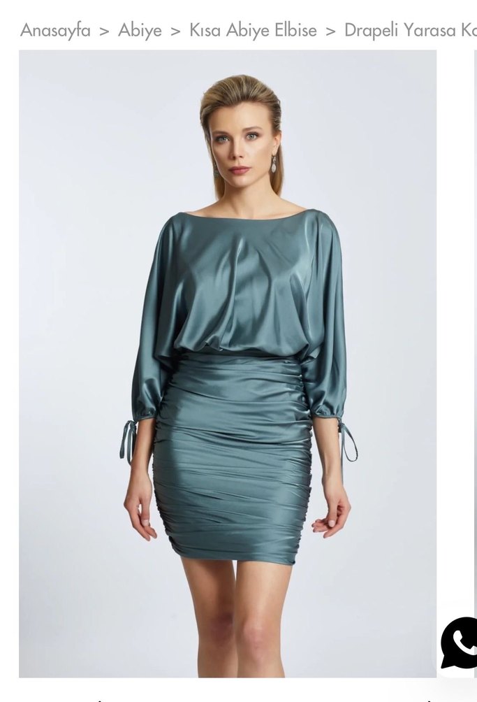 Hiç giyilmemiş etiketi üstünde elbise. Parlak gri kumaştan, drapeli tasarımlı, tekne yaka ve askılı kollu, dar kesim kısa abiye elbise. Romantik akşamlar için ideal. ✨