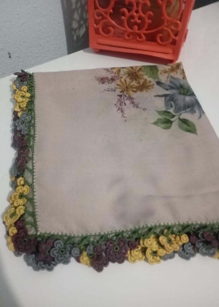 Cenk pudra renk çiçekli fıstık oyalı yazma