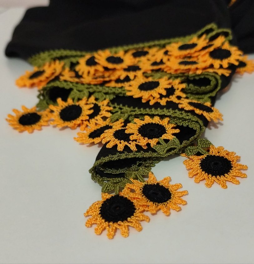 cenk siyah ayçiçeği oyalı yazma sıfır yeni yapıldı