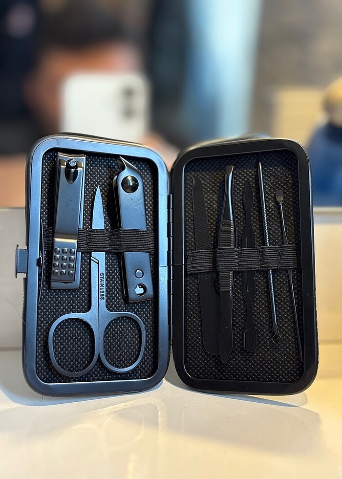 Deri cüzdan şeklinde bakım seti boyutu cebe uygundur içinde günlük kullanıma uygun her alet vardır hiç kullanılmadı.