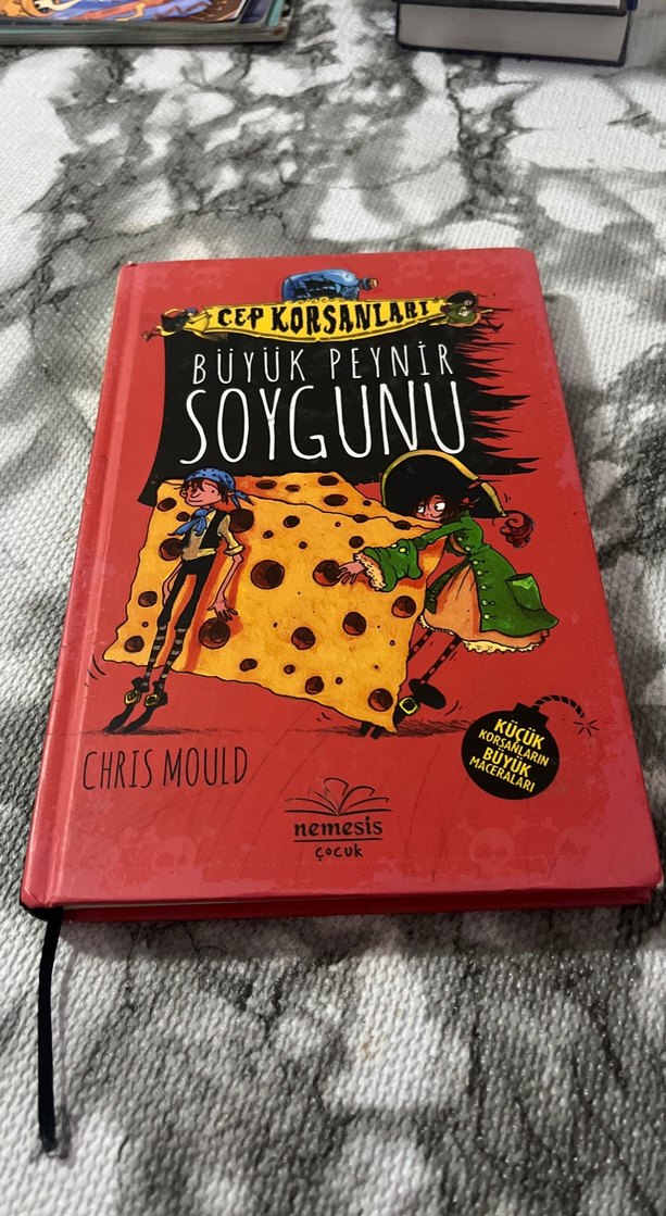 Chris Mould'un yazdığı 'Cep Korsanları: Büyük Peynir Soygunu' çocuk kitabı, renkli kapağı ve çizgi film karakterleriyle dikkat çekiyor. Nemesis Çocuk yayınevi tarafından basılmıştır.