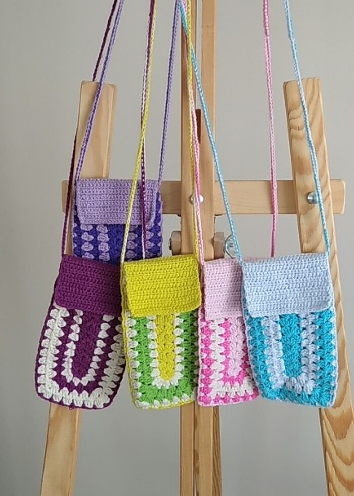 Ürünler istenilen renkte sipariş üzerine örülmektedir. Soldaki üç çantayı severek kullanmaktayım. Sağdaki mavi ve pembe yeni örüldü. Cep telefonu, tütün çantası ve para çantası olarak rahatlıkla kullanılmaktadır. #orgucanta #ceptelefonu #askilicanta #caprazcanta #bag #knit #colorful #elorgusu