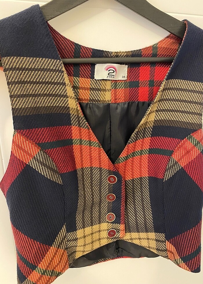 Ürün 1 defa giyildi. Çok temiz şık ve sade bir parça etek pantolon şort herşey ile kombin yapılabilir. Rengini bordo olarak yazdım fakat lacivert bordo sarının tonu karışık bir renk çok tarz ve kimseden olmayan bir klasik bir tasarım ceket