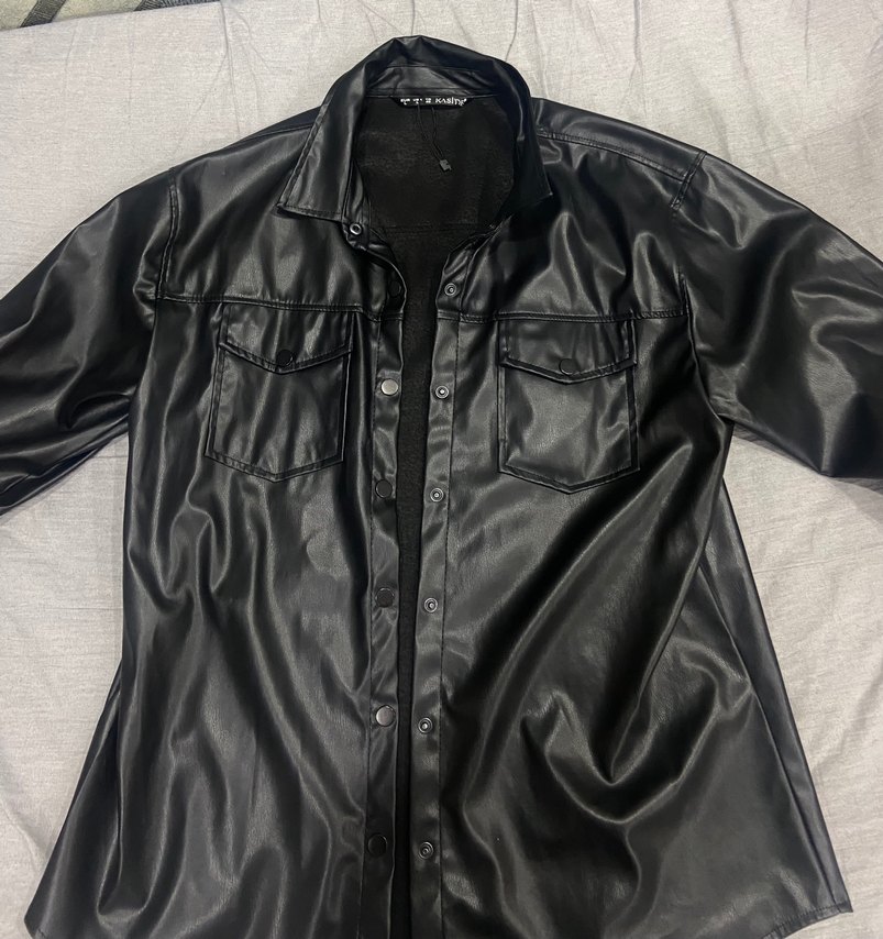Düğmeli ön kısmı, uzun kollu ve yakalı tasarımıyla siyah deri ceket, rahat ve parlak dokusuyla günlük sokak stili için uygundur. Cepler kullanılabiliyor. Kalçayı kapatır oversize. Erkekler için de uygun. Hiç giyilmedi yer kapladığı icin satıyorum