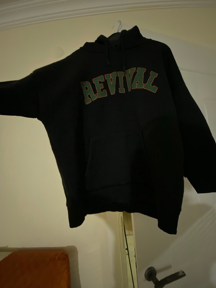 Uzun kollu, bisiklet yaka ve bol kesim siyah kadın sweatshirtü. Önünde "AEVIVAL" yazılı baskı ve cep bulunur. Yumuşak ve sıcak kumaştan, günlük kullanım için uygundur.