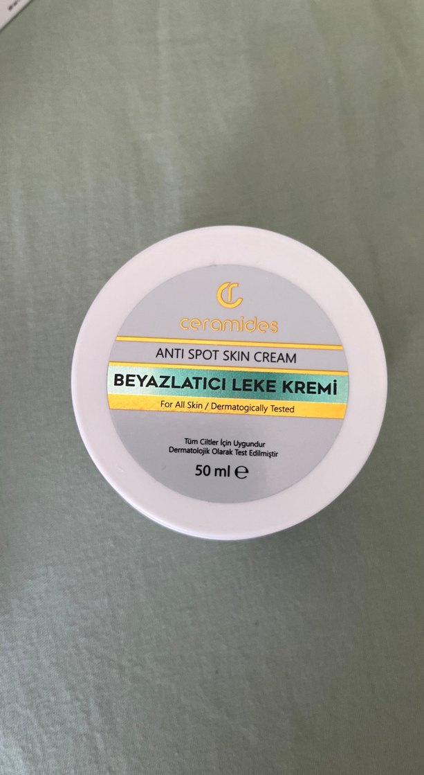Ceramides Beyazlatıcı Leke Kremi, tüm cilt tipleri için uygundur. Leke görünümünü azaltır ve cilt tonunu açar. 50 ml boyutundadır.