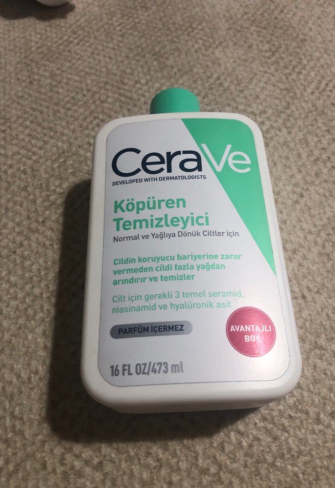 CeraVe köpüren temizleyici, cildin koruyucu bariyerine zarar vermeden fazla yağı arındırır. 3 temel seramid, niasinamid ve hyalüronik asit içerir. Parfümsüzdür.