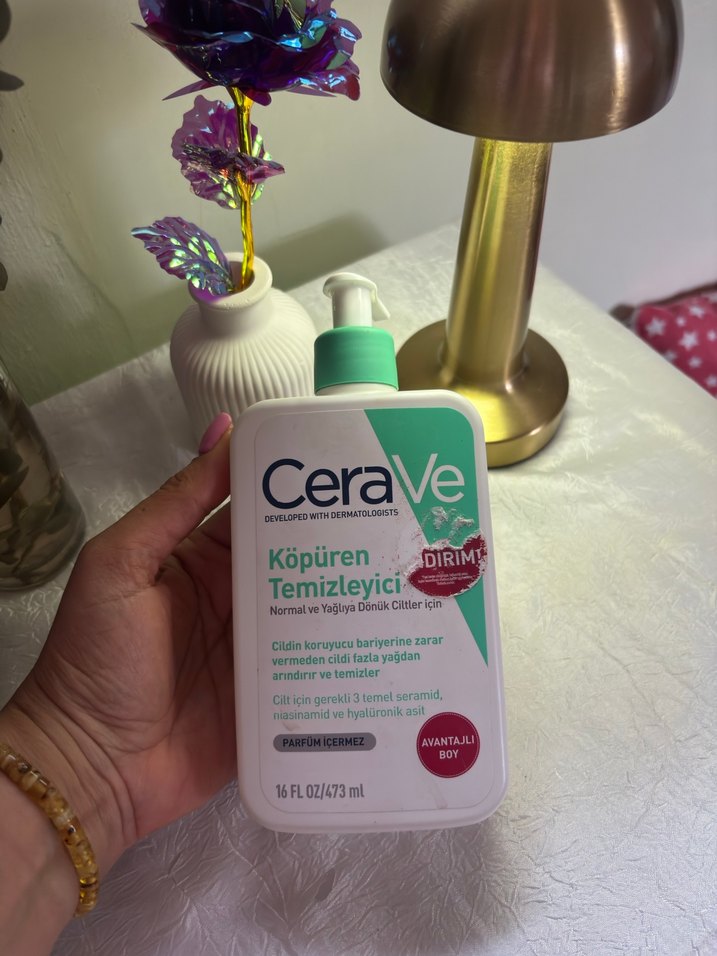 CeraVe köpüren temizleyici, normal ve yağlı ciltler için fazla yağı ve kiri nazikçe temizler. Üç temel seramid ve hyalüronik asit içerir, parfümsüzdür.