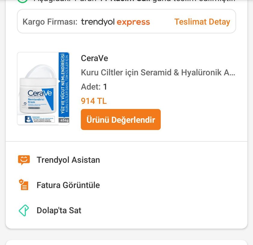 CeraVe kuru ciltler için seramid ve hyalüronik asit içeren nemlendirici ve koruyucu nemlendirici krem . Adet: 1. ben Fotografra görünen fiyata aldım daha Uygun'a gönderecegim kullanım yapılmamıstır.