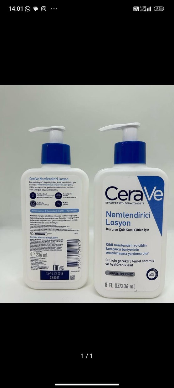 CeraVe Nemlendirici Losyon, kuru ve çok kuru cildi nemlendirir, cildin koruyucu bariyerinin onarılmasına yardımcı olur. Parfüm içermez.