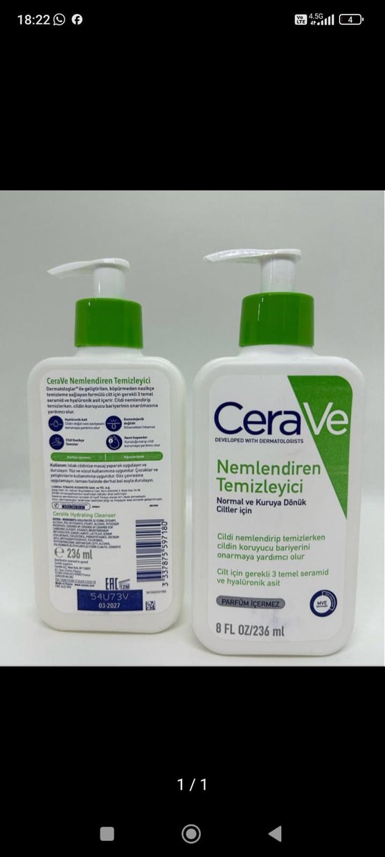 CeraVe Nemlendirici Yüz Temizleyici, normal ve kuruya dönük ciltler için nemlendirirken cildi temizler. Seramid ve hyaluronik asit içerir, parfümsüz.