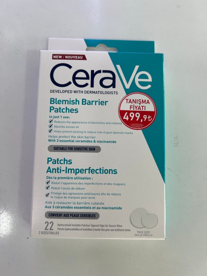 CeraVe Sivilce Önleyici Yamalar, lekeleri ve kızarıklığı azaltır, fazla yağı emer. Hassas ciltler için uygundur, cilt bariyerini seramid ve niasinamid ile korur. 22 yama içerir.