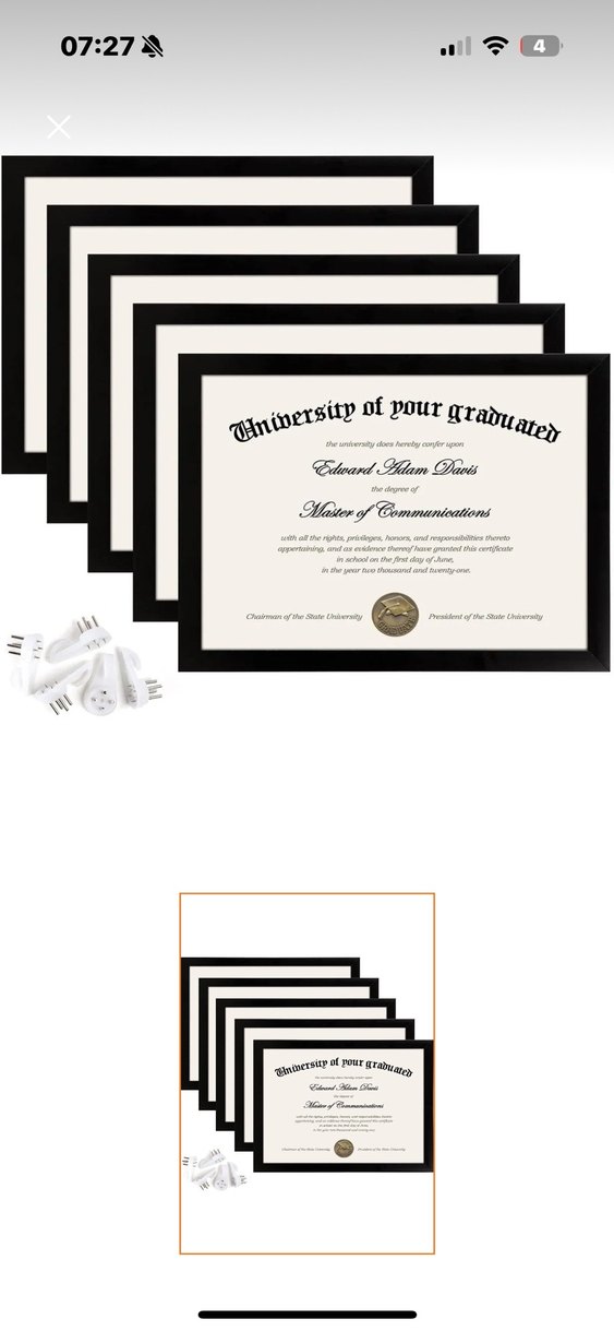 Siyah çerçeveli, altın mühürlü üniversite diploma sertifikası seti. Klasik tipografi ile tasarlanmıştır. Fiş adaptörleri dahildir. 11 adet setifika diploma çerçevesi