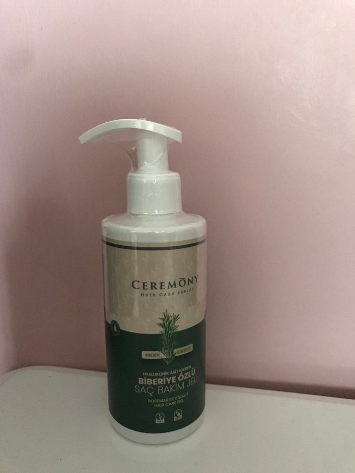 Ceremony biberiye özlü saç bakım jeli, hyaluronik asit ve biberiye özü içerir. Saçları besler ve korur. Kullanımı kolay pompalı şişede. ♀️