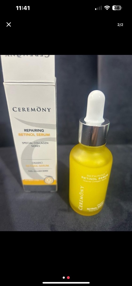 Ceremony Onarıcı Retinol Serumu, özel kollajen içeriğiyle cilt elastikiyetini artırır ve yaşlanma karşıtı bakım sağlar. Damlalıklı şişede.