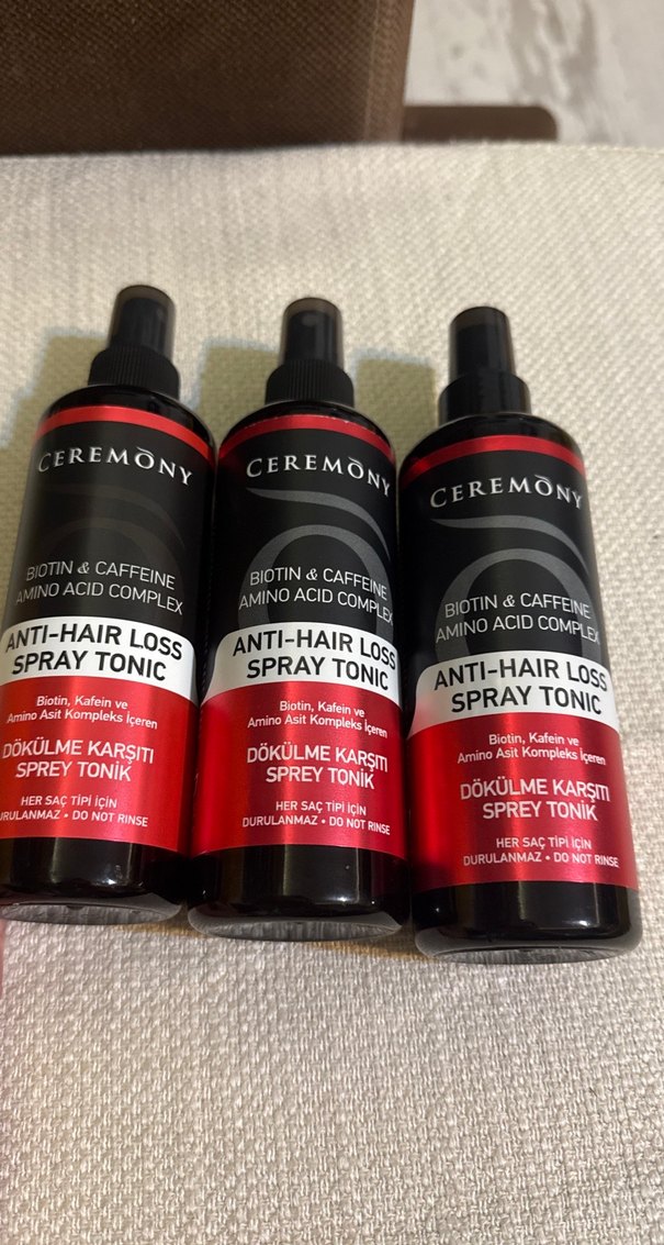 Sıfır ürünler 4 kutu sprey var tane fiyatıdır Ceremony Dökülme Karşıtı Sprey Tonik, biotin, kafein ve amino asit kompleksi içerir. Tüm saç tipleri için uygundur ve durulanmaz. ♂️